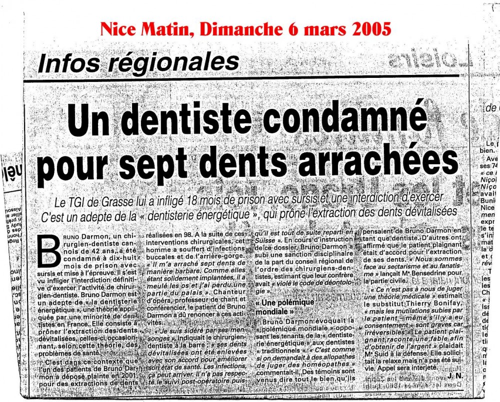 Il existe deux personnes (au moins) qui me diffament sur internet. La première est une dentiste qui a écrit un livre sur une dentisterie holistique à elle, ce que je respecte mais qui qualifie la mienne de dentisterie mutilatoire. Quelle nous montre donc une centaine de cas médicaux complexes qu’elle a guéri avec sa dentisterie holistique à elle (comme sur ce site) et après on en rediscutera.