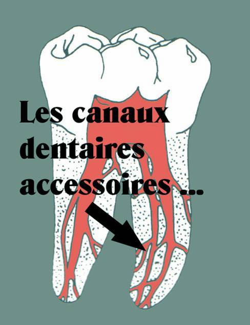 Les canaux accessoires restent la plupart du temps inaccessibles au nettoyage et constituent par conséquent le siège de putréfactions même si cela ne provoque pas de douleurs ni d’infection locale la plupart du temps.