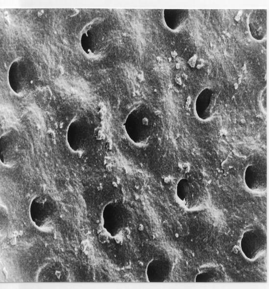 Image en microscopie électronique des tubulis dentinaires constituant l’ivoire ou la dentine.